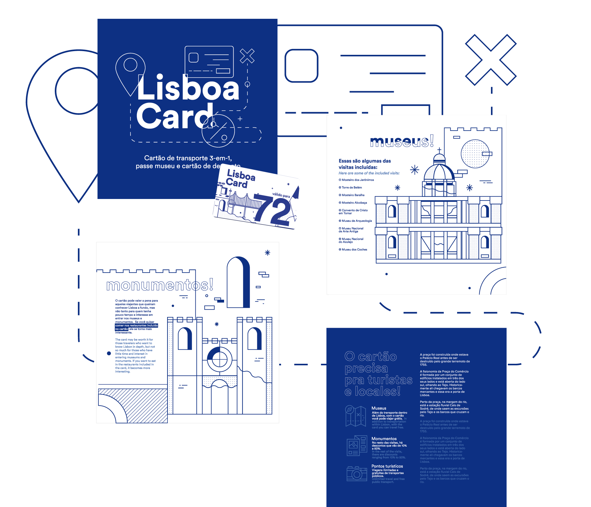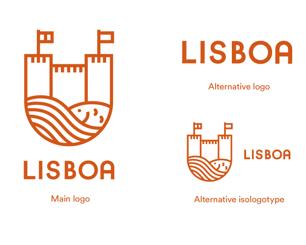 The logo is composed by four elements that -I consider- are key for Lisbon. The shield shape was inspired by the city flag design. The castles are still well-preserved and are actually one of the main attractions in Lisbon. The water waves represent the Tejo river, the largest river that extends all through the Iberian coast. And finally, the sardine, which became a symbol for the city; whether it is gastronomy or decorative stuff, you can find the sardine everywhere in Lisbon.